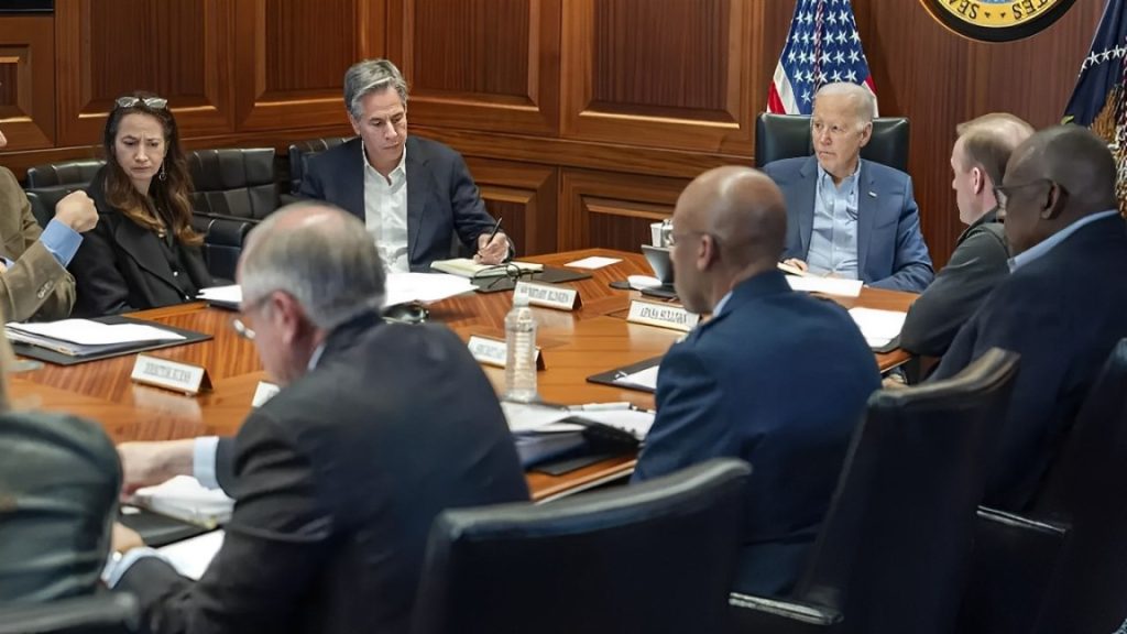 వైట్ హౌస్ ప్రకటనలో ఇలా చెప్పింది, “బైడెన్, జీ7 ఇజ్రాయెల్పై ఇరాన్ దాడిని నిస్సందేహంగా ఖండించాయి. అధ్యక్షుడు బైడెన్ ఇజ్రాయెల్, ఆ దేశ ప్రజలకు యునైటెడ్ స్టేట్స్ యొక్క పూర్తి సంఘీభావం, మద్దతును వ్యక్తం చేశారు. అమెరికా బలమైన నిబద్ధతను పునరుద్ఘాటించారు. ఒక రోజు ముందు, బైడెన్ ఇజ్రాయెల్ వైపు వెళ్లే క్షిపణులను కూల్చివేయాలని యుఎస్ ఆర్మీకి ఆదేశాలు జారీ చేశారు. ప్రస్తుతం, ఇజ్రాయెల్ను రక్షించడానికి మధ్యప్రాచ్యంలో సుమారు 1 లక్ష మంది అమెరికన్ సైనికులు, రెండు క్యారియర్ స్ట్రైక్ గ్రూపులు,వందలాది ఫైటర్ ఎయిర్క్రాఫ్ట్లు మోహరించబడ్డాయి.” వైట్ హౌస్ ప్రకటించింది.