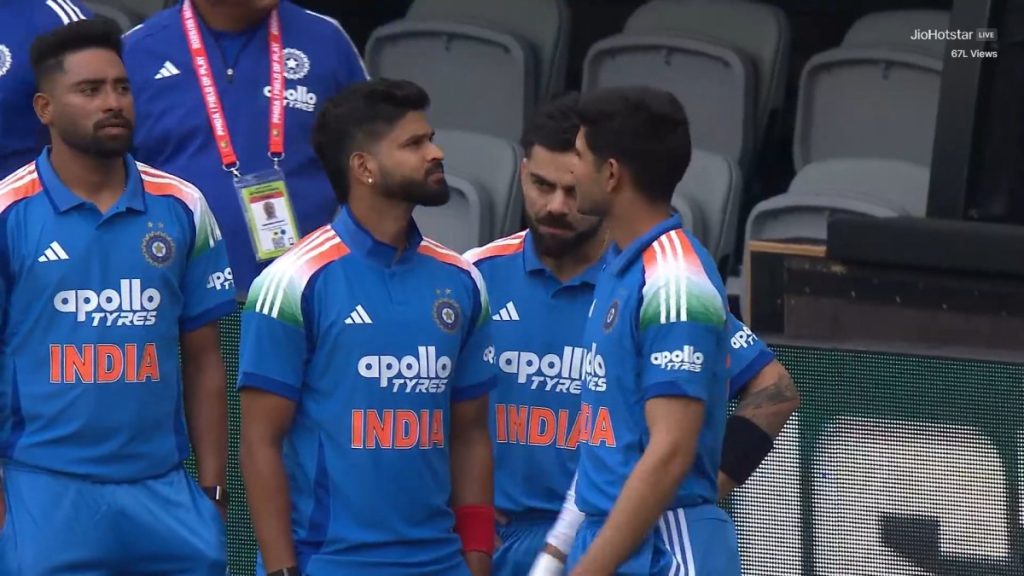 అంతకుముందు టాస్ ఓడి బ్యాటింగ్కు దిగిన భారత్కు ఆరంభంలోనే భారీ షాక్ తగిలింది. శుభ్మన్ గిల్ (9), విరాట్ కోహ్లీ (0) ఒకే ఓవర్లో పెవిలియన్ చేరారు. ముఖ్యంగా కోహ్లీ, తన వన్డే కెరీర్లోనే తొలిసారి వరుసగా రెండు మ్యాచ్ల్లో డకౌట్ అయి తీవ్రంగా నిరాశపరిచాడు.